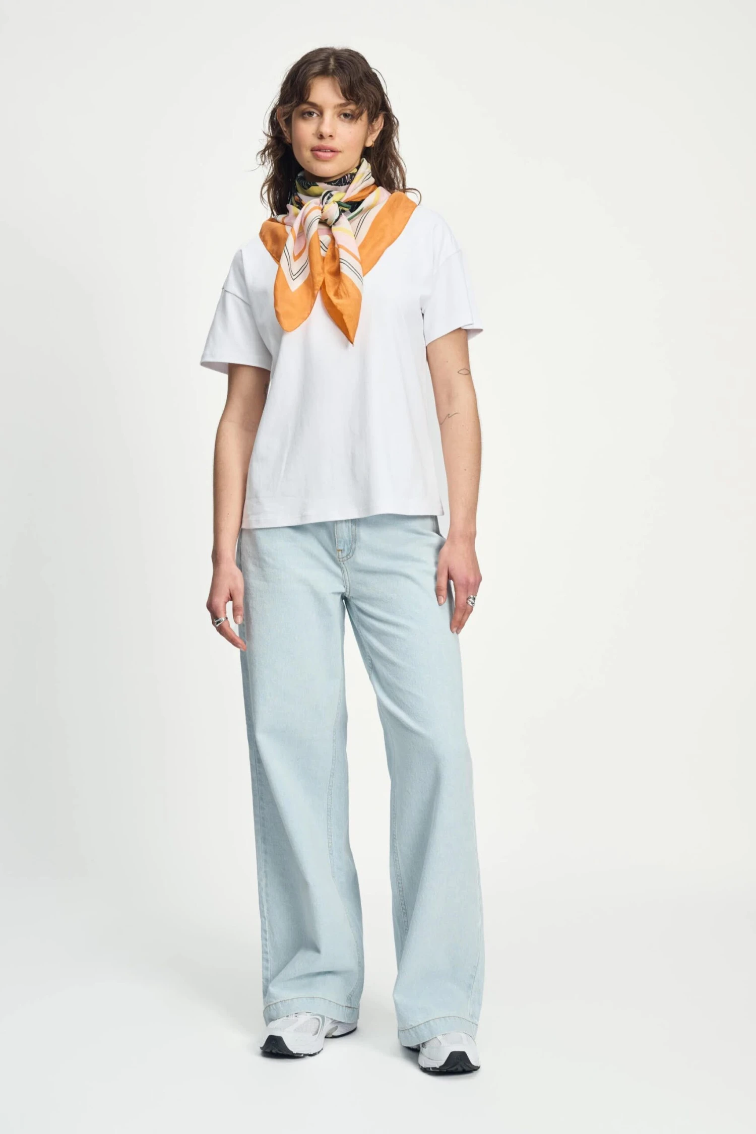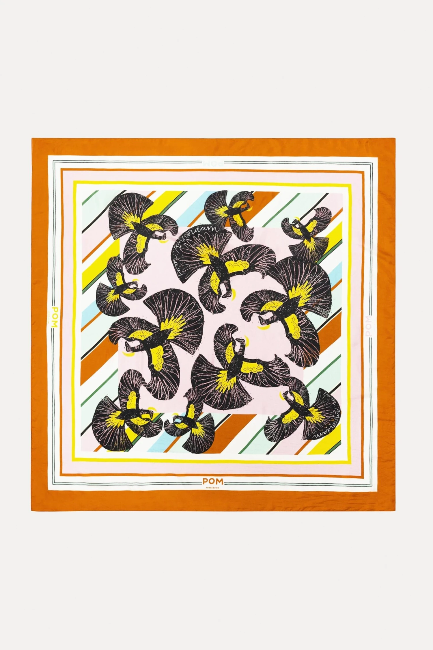 This shawl is colorful and has a print with birds. The shawl is made of 100% silk, which gives a chic look.