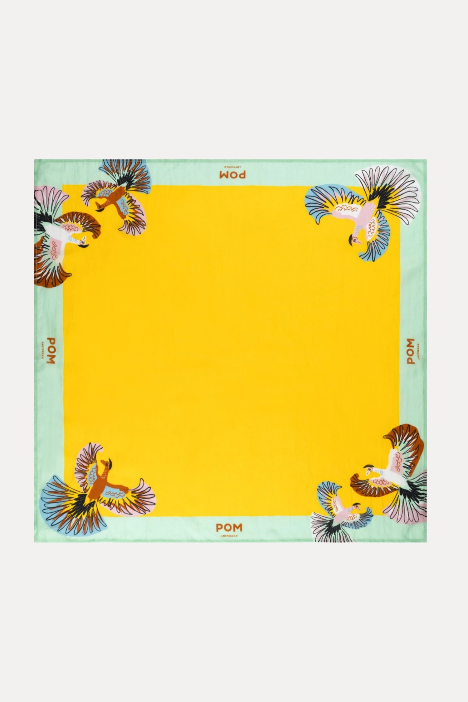 Discover the Summer Yellow Birds shawl in summer yellow color and a bird print. Thanks to the use of soft and airy material, this shawl is ideal to wear in spring.