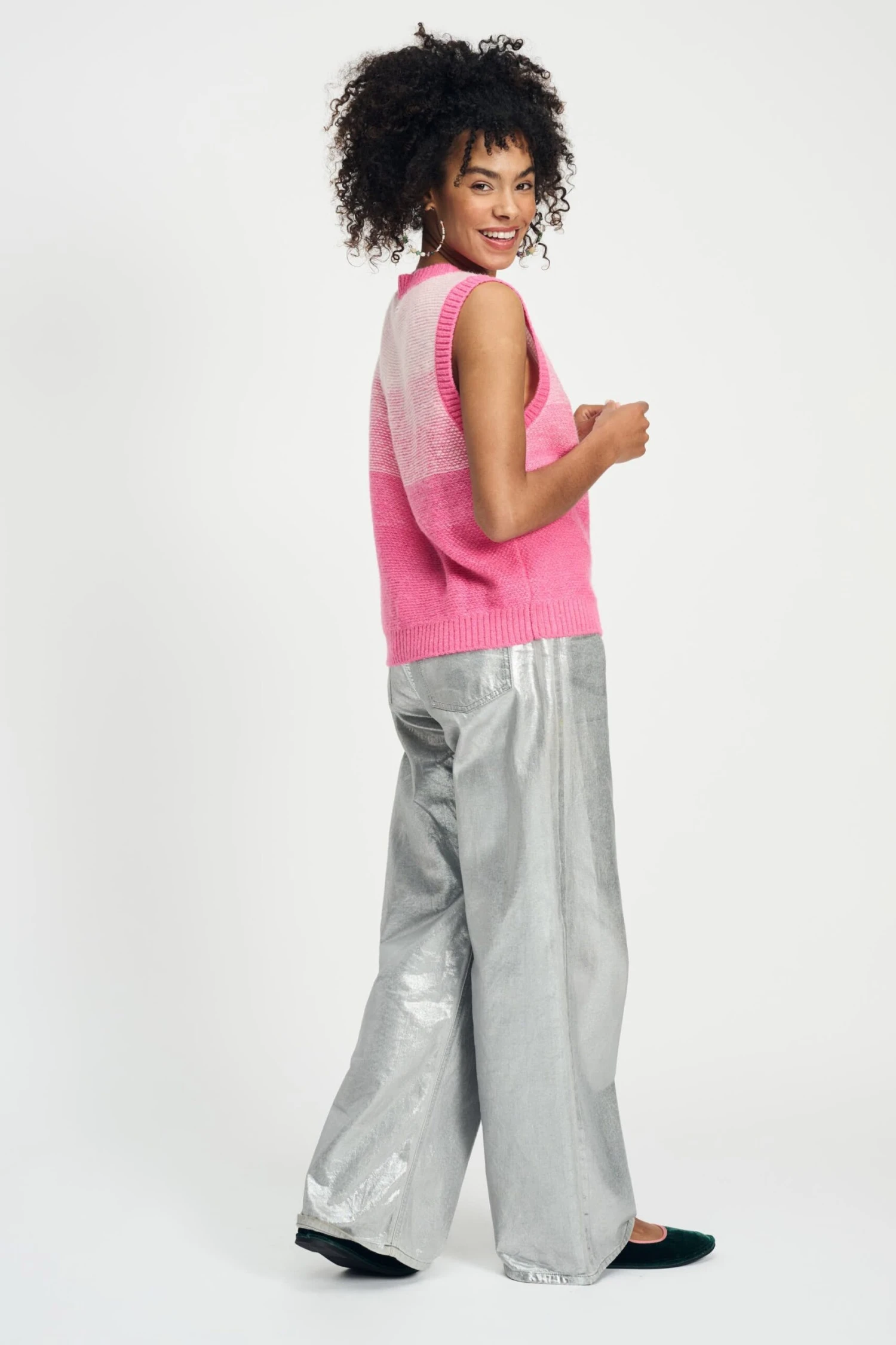 Discover the spencer in different shades of pink. The spencer has a round neckline and is finished with beige/brown buttons. Perfect to pair with jeans for a fun spring look!