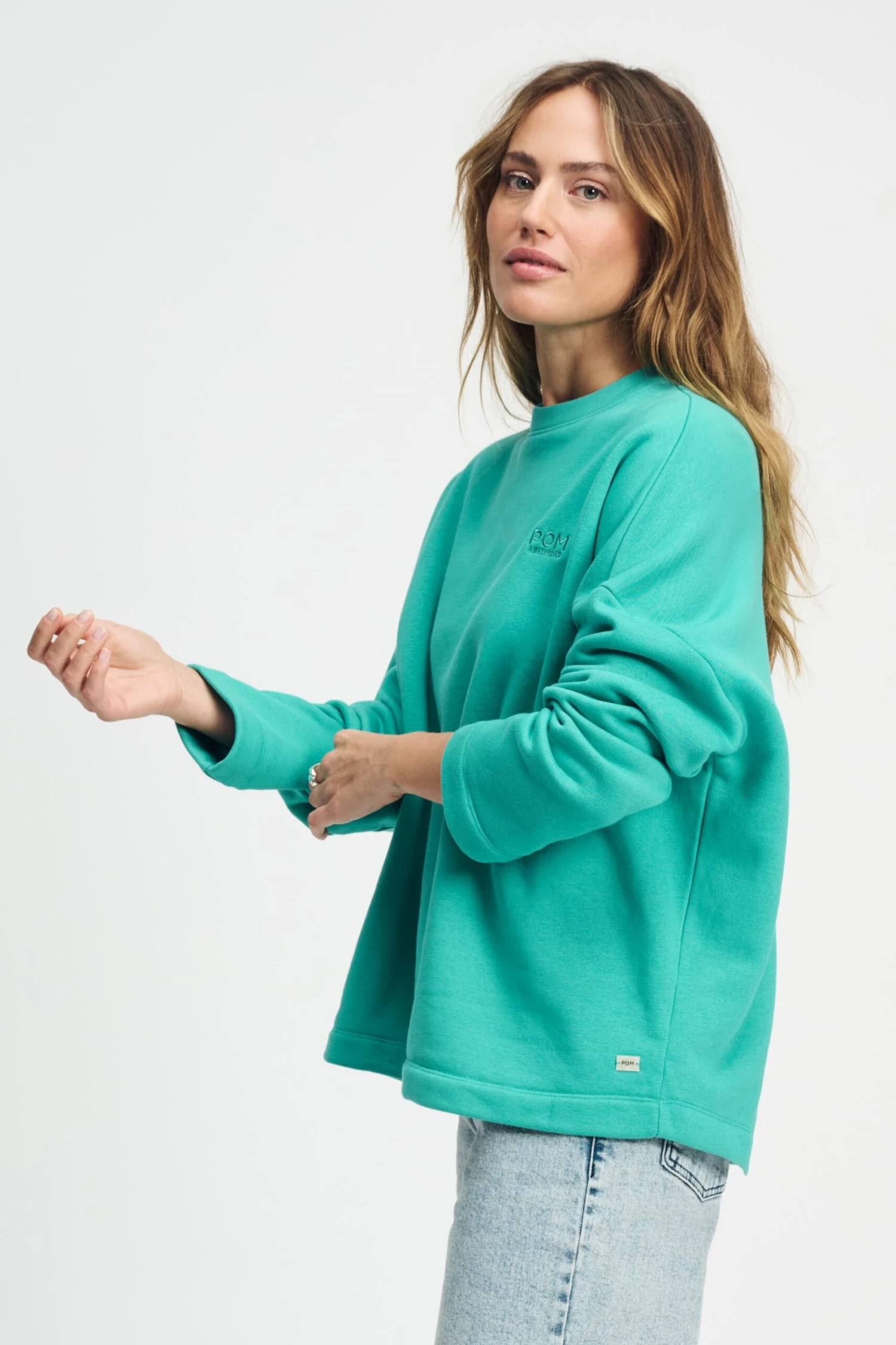 This green jumper has an oversized fit and an embroidered logo on the left chest. The lightly brushed interior provides a perfect combination of style and comfort.
